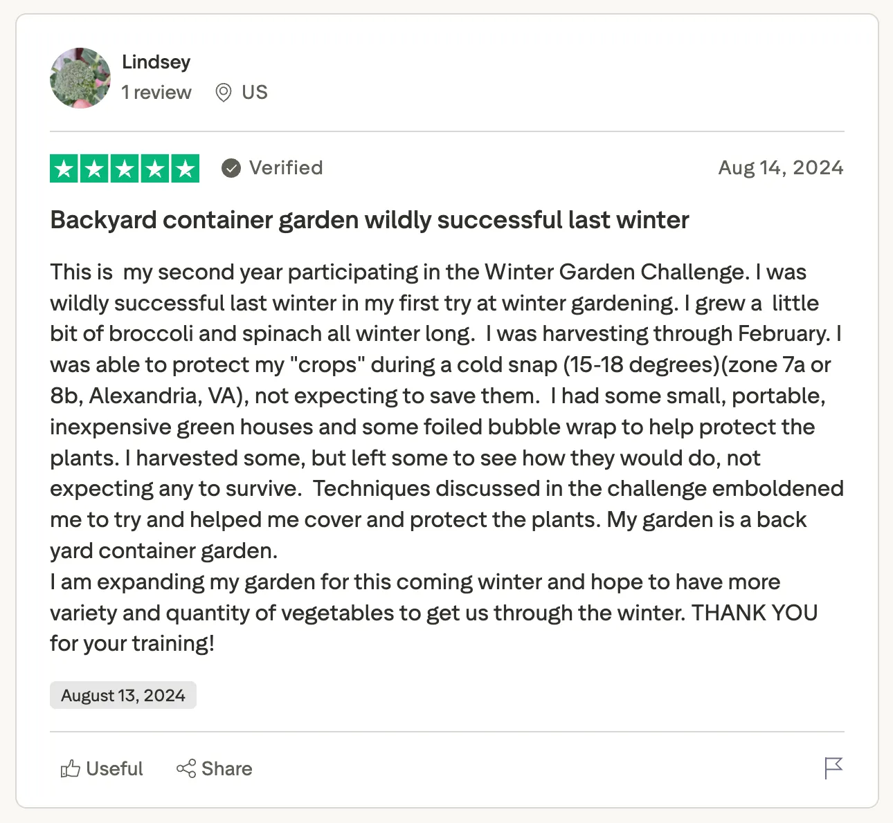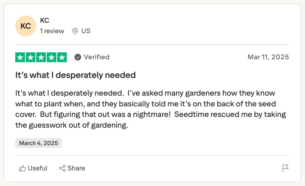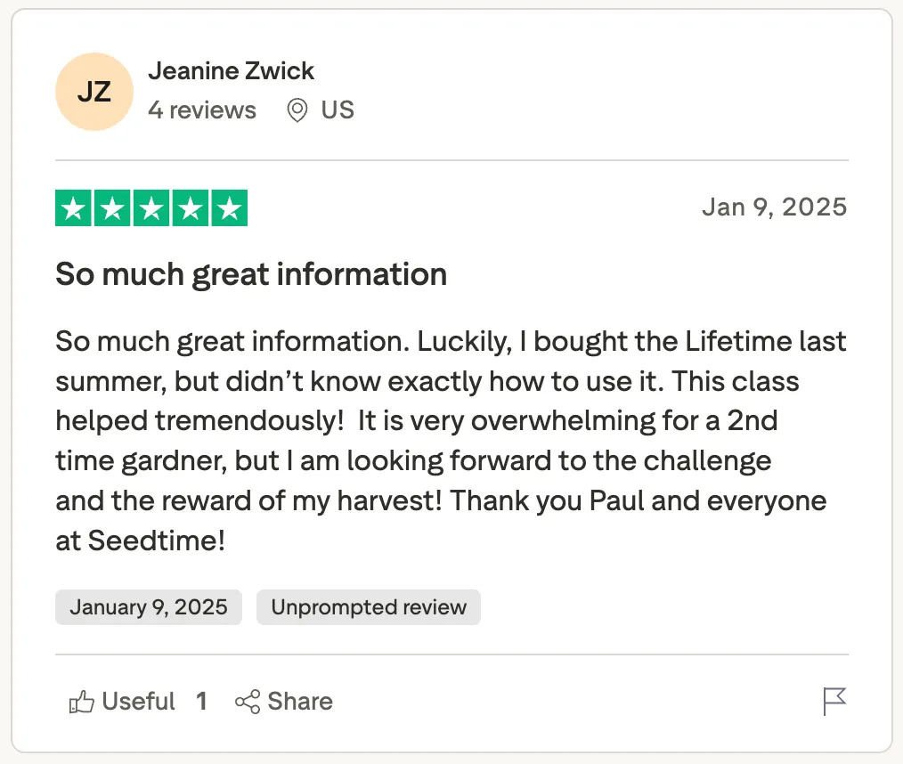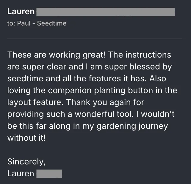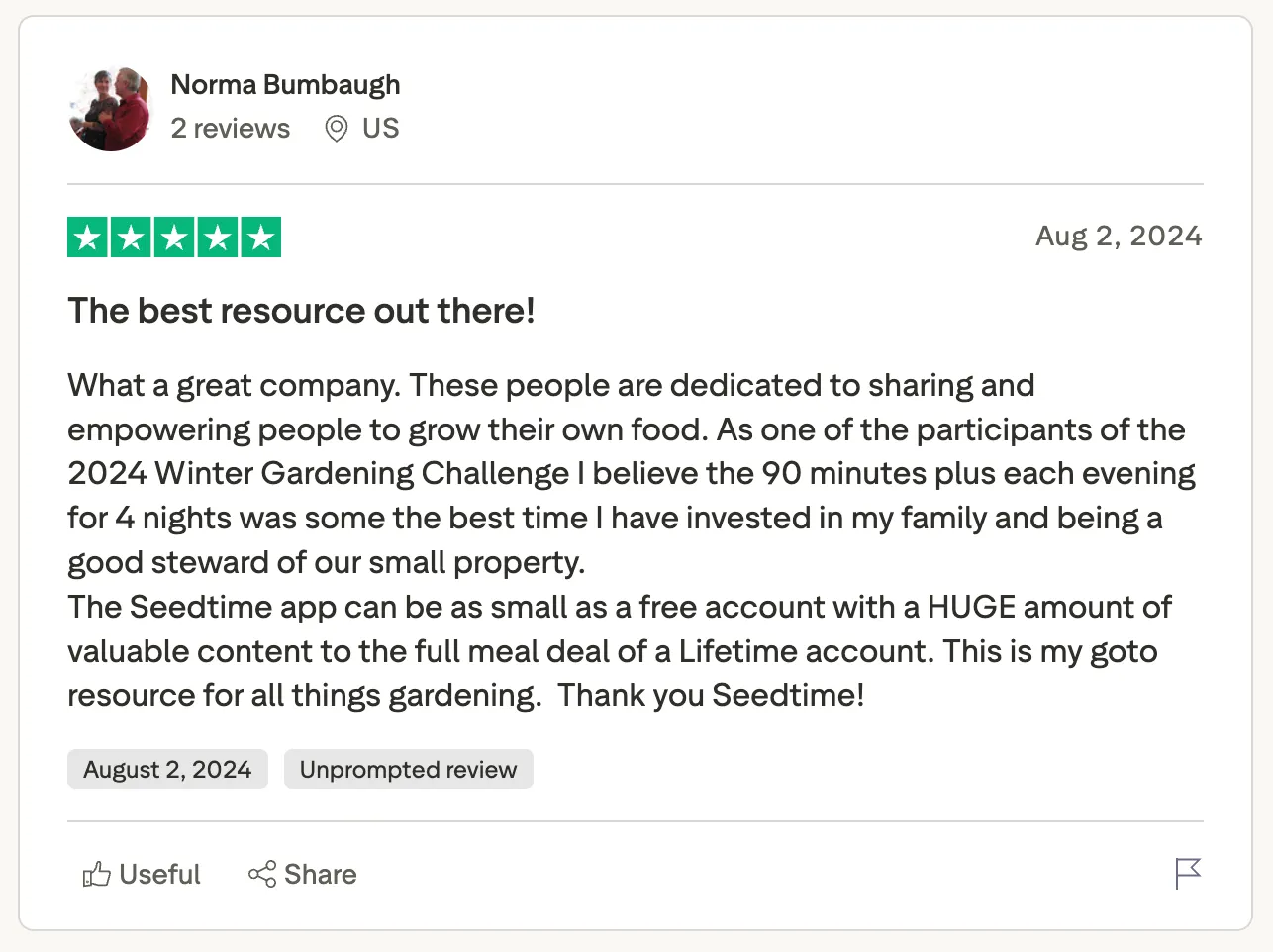 Seedtime does not guarantee these results. Individual outcomes may vary based on factors like location, climate, effort, and growing conditions.